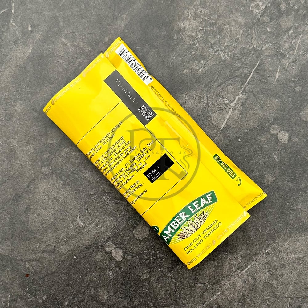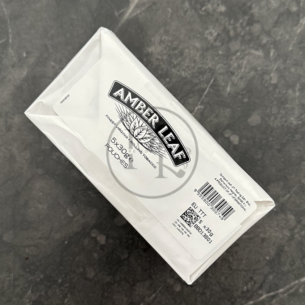 Amber Leaf 30g is supplied in a sealed soft pouch format containing loose fine-cut tobacco intended for manual cigarette rolling. The cut is relatively narrow and moderately long-fibered, allowing consistent packing in both papers and tubes.