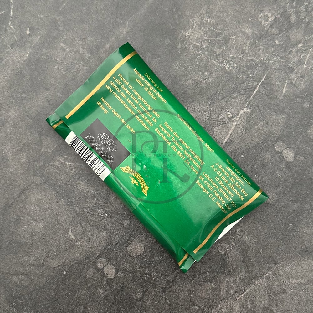 Golden Virginia 50g Original Classic is supplied as a loose, fine shag cut tobacco packaged in a 50g pouch format. The cut is narrow and ribbon like, designed for manual rolling or injector use. The blend combines flue cured Virginia leaf as the base with smaller portions of Burley and Oriental tobaccos to balance combustion rate and moisture retention. The mixture shows a medium moisture level typical of ready to roll blends, allowing direct use without additional conditioning.