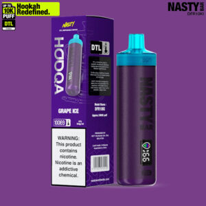 NASTY Hooqa DFR10Ki Grape Ice. Nasty Hooqa DFR10Ki Grape Ice is a captivating blend of bold flavours and icy exhilaration as you savour the essence of plump, juicy grapes that unleashes a wave of refreshing coolness. Stop smoking with NASTY today!